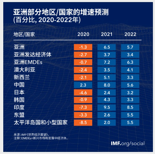 至于2022年亚洲经济增长的预测从4月份的5.3%上调至5.7%,则反映了国际货币基金组织对亚太地区在冠病疫苗接种方面的进展。