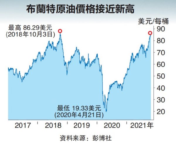 在过去两个月里,油价一直在攀升,自9月初以来,布兰特原油价格上涨约19%,纽约原油也扬升约21%。