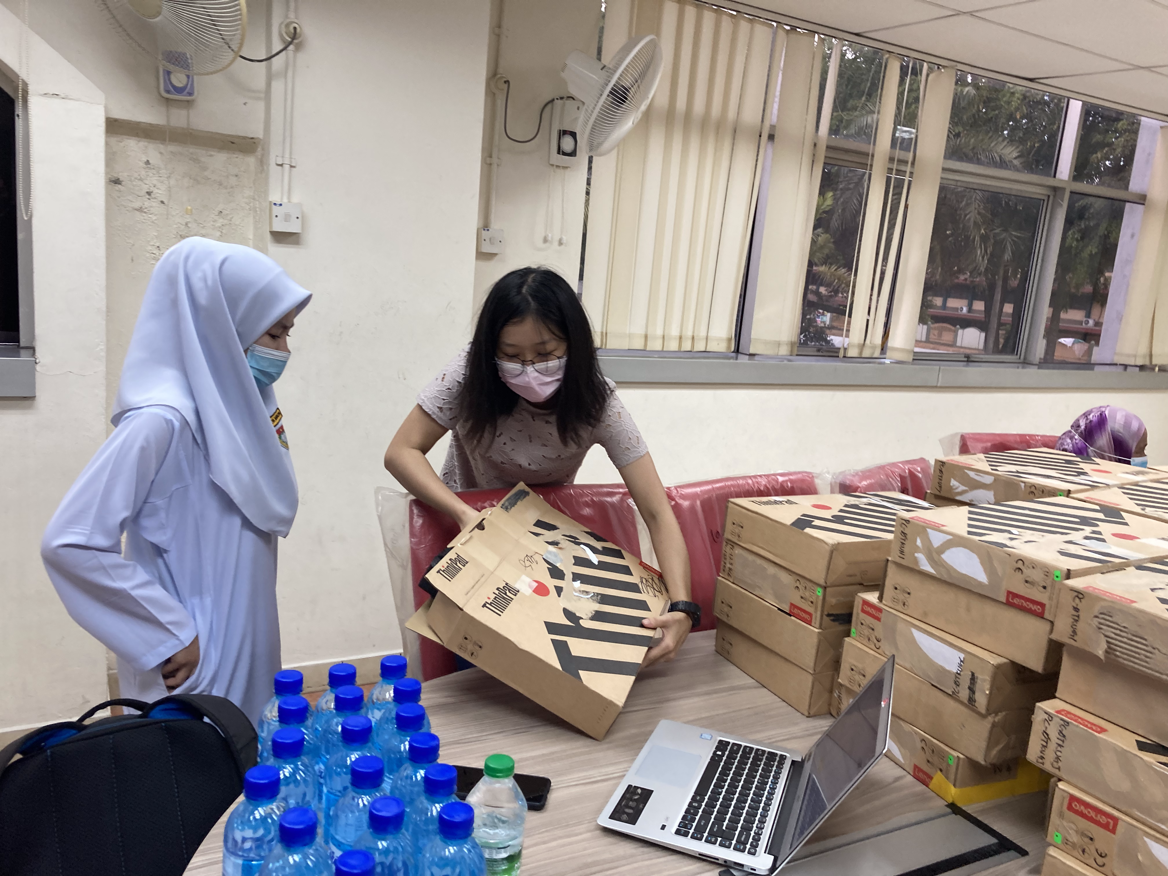 “随着援助计划的壮大,有些企业或个人也会捐赠全新的笔记本电脑或平板电脑给我们,再转交到有需要且符合资格的学生手上。”