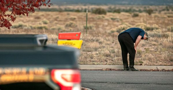 哈莉娜的丈夫马修(Matthew)和9岁儿子安德罗斯(Andros)已赶到新墨西哥州处理后事。曝光的照片中,父子俩戴着口罩,低头神情落寞,走在前方是头发斑白、身穿黑衣的阿历宝云。