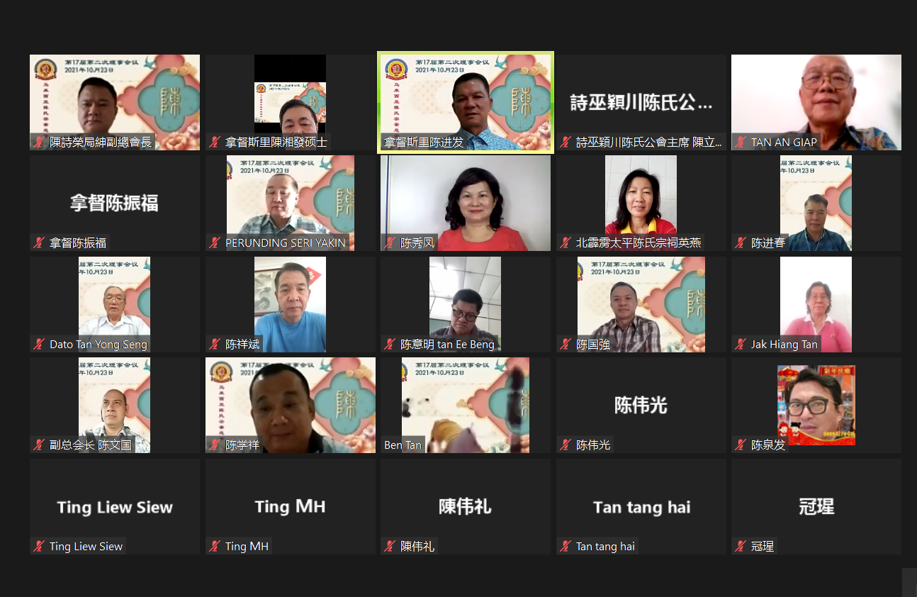 (吉隆坡26日讯)马来西亚陈氏宗亲总会(陈总)于近日透过ZOOM视频,顺利召开第17届第2次理事会议,来自全马各地近50名理事参与。