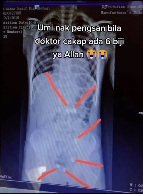 她说,艾马哈斯于当天晚上大约11时50分入院及抽血,并在入院期间一直观察是否出现肚痛、呕吐、头晕与发烧,以及每天照X光确定电池的位置。所幸的是,儿子最后能痊愈出院。