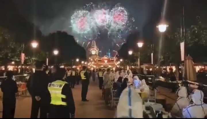 迪士尼乐园在核酸检测期间,“烟花绽放”的画面,在中国社交网络刷屏。中国官媒《人民日报》星期日深夜在官微发布视频展现烟花燃放时乐园内的情景,并配文说,“上海迪士尼,烟花在夜空中清冷绽放。医护人员和民警逆行入园,投入紧张有序的核酸检测工作”,并引述网民评论说“眼眶热了,感谢所有为我们负重前行的人!”