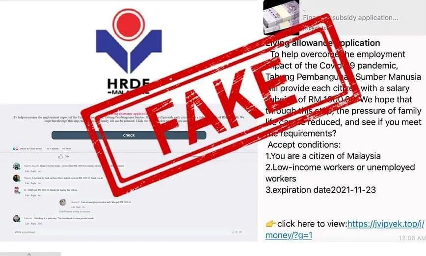 社交媒体上各平台,尤其是WhatsApp流传指人力资源部将通过人力资源发展基金(HRDF),为有需要的民众提供高达1000令吉的生活补贴费用,以协助减轻这个群体的家庭负担。