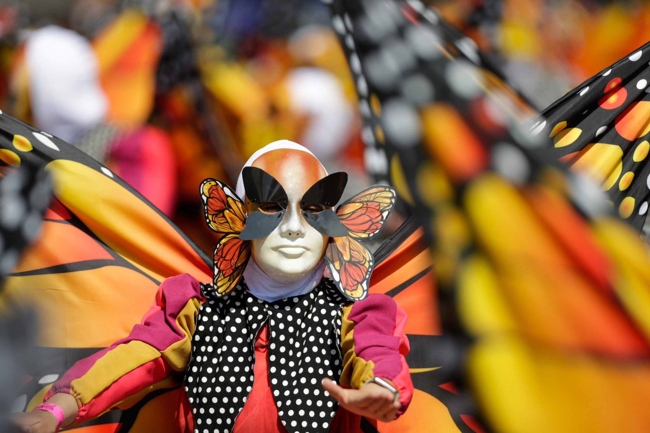 缤纷的花车、乐团和表演者行进期间,改革大道(Paseo de la Reforma)沿街的民众大多戴着口罩参与其中,还有些人自豪地在脸部涂上鲜明的骷颅头妆容,包括当地人和外来游客在内,数以千计的民众沿着穿越首都的游行路线排列,只为亲睹这场盛事。