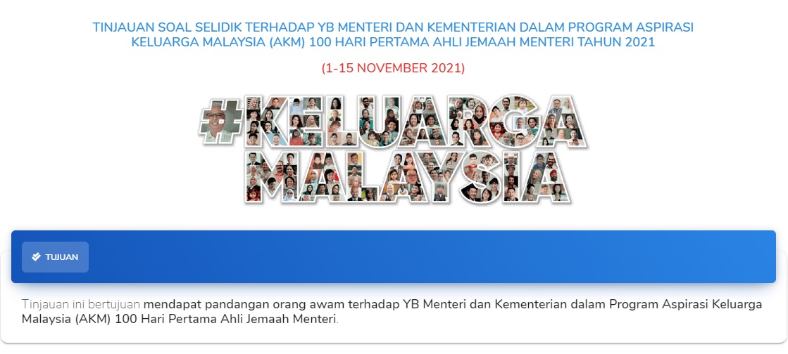 从11月1日起,直到11月15日,大马人可透过MyTinjauanAKM网站上的调查问卷,评估部门和部长在上任后100天的表现。