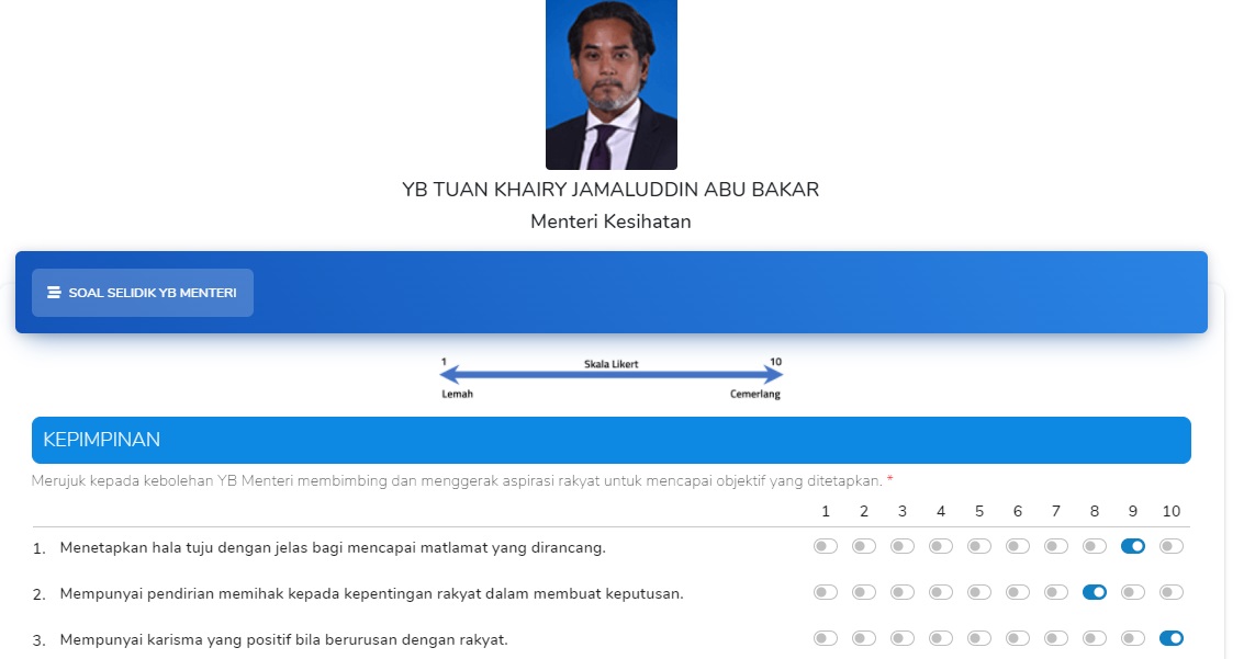 (吉隆坡2日讯)首相拿督斯里依斯迈沙比利曾宣布将让人民为内阁部长的表现打分,这份问卷将从今日起开放让全民参与!