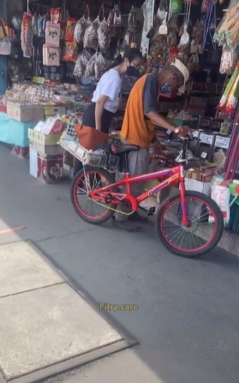 根据TikTok视频,Fitry当天上午前往巴刹途中,看见一名老翁伫立在杂货店外,盯着一包红枣许久,但最终并没有购买,一脸愁容地推着脚车打算离开。