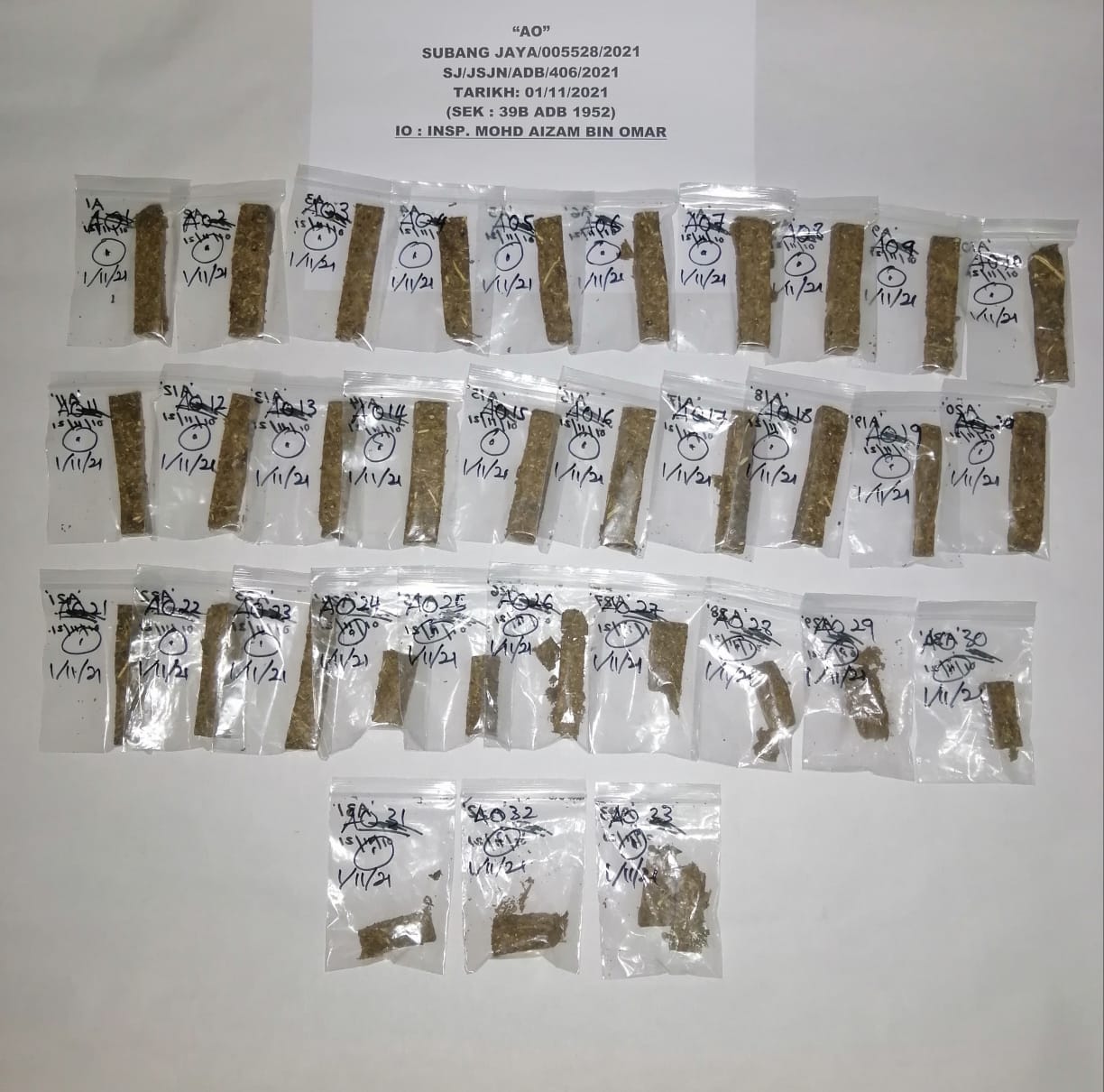 梳邦再也警区主任阿都卡立助理总监今午发文告指出,警方于11月1日晚上7时到首邦市一间住家展开行动,逮捕一名巫裔嫌犯(廿余岁),起获33包约307克的大麻叶。
