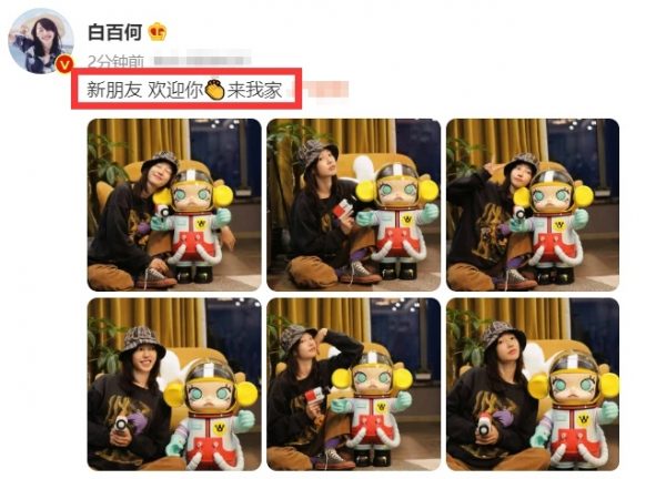 白百合第一条动态是正常上班营业的动态,隨后第二条动态则连发了6张美照,在晒出的照片中,白百何与潮玩摆件来了个亲密合影,在随意变换的拍照姿势中,白百何的好心情更是写到了脸上,时不时嘴角上扬,时不时闭眼微笑,还托着下巴做出了傲娇的小表情,既然可爱又俏皮,完全享受在拍照的氛围中,玩得不亦乐乎。仔细看照片上后面的窗户,似乎能够看到有两个男人戴着口罩站在后面,还有一个小男孩在后面,不知道是不是白百何的儿子元宝?