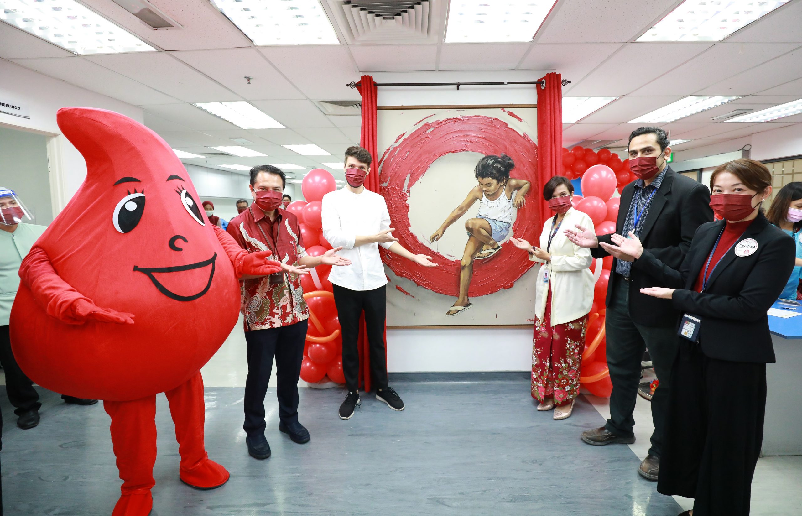 恩尼斯日前拜访马大血库中心,为“生命周期”油画揭幕。