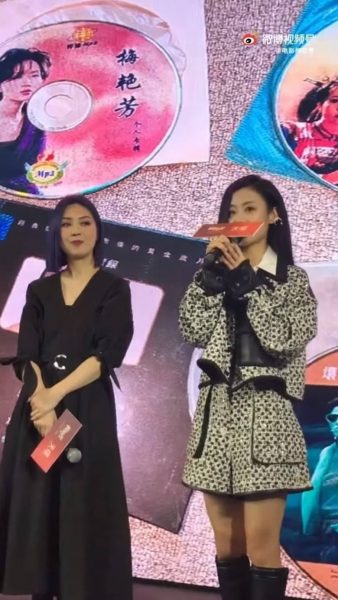 电影《梅艳芳》宣传最新一站来到广州,现场除了杨千嬅、女主角王丹妮及监制江志强外,还请来曾在比赛时唱过梅艳芳《蔓珠莎华》的伍珂玥担任嘉宾,伍珂玥表示“有些碟子比我年纪还要大,小时候家里有梅姐碟子是一件引以为傲的事情。”杨千嬅接过她的CD研究一轮后却露出尴尬神色,原来伍珂玥的梅艳芳CD全是翻版,伍珂玥仍懵然不知,继续发表敬爱梅姐的感言。之后杨千嬅向台下打眼色,即有工作人员上台拿走CD,杨千嬅解决了公关灾难后,马上恢复笑容,该段影片事后更在网上疯传。
