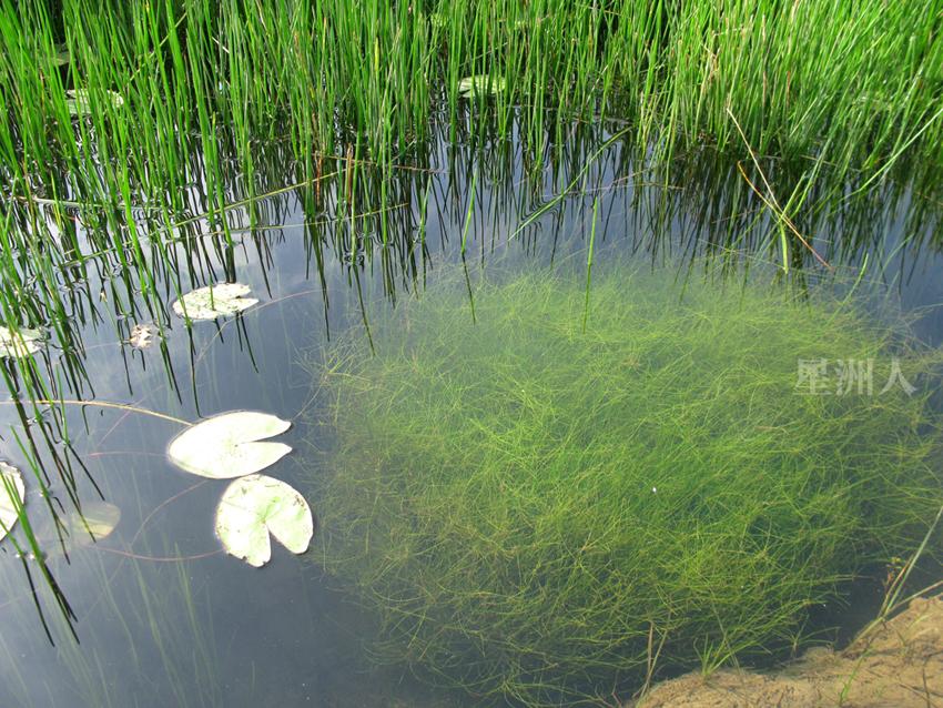 迷你荸荠主要生长在渠道旁的一条小土沟里,较少出现在几乎被大荸荠和睡莲给占满的大渠道里。然而,那些少数长在大渠道里的迷你荸荠,大多数都长得非常好看。在水较深处,它看起来宛若一大丛浅绿色粗乱的长发,非常美丽。它很像我哥以前在水族箱里栽种的牛毛毯水草,但比牛毛毯稍长且末端多分支,颇有几分不羁的美感。经过查询,我才知道牛毛毯原来也是荸荠属的植物,学名是Eleocharis parvula。