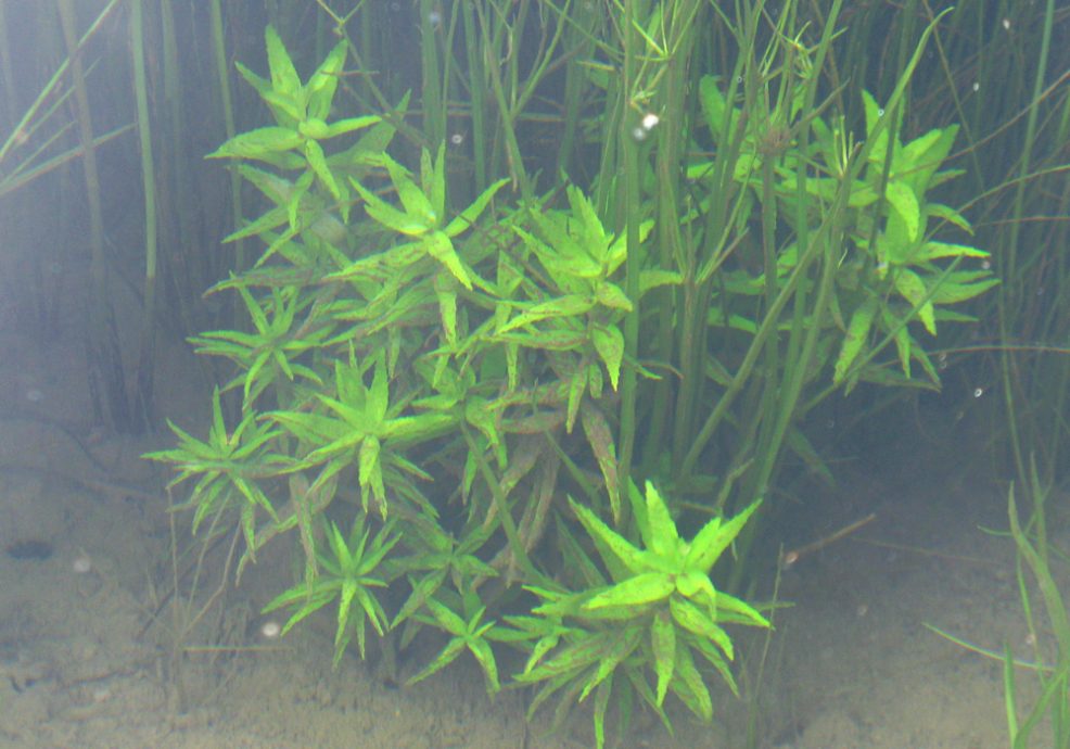 数个月前我家这一带雨水较多,渠道的某个段落连续两三月来水位一直很高,很适合水生植物生长。那阵子我在田地和渠道里又发现了数种水生植物,包括有田葱、石龙尾、茨藻,以及我相当熟悉的食虫植物——黄花狸藻(学名Utricularia aurea)。