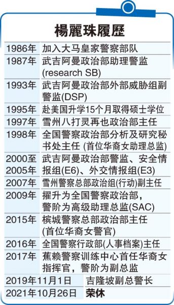 吉隆坡前副总警长拿督杨丽珠,卸下35年重责之前,大部分时间投身于大马皇家警队政治部,这在人民眼中就像神秘事务司的工作,虽然没有站在硝烟战场上持枪打仗,却是旨在维护国家安全为首的重要单位。