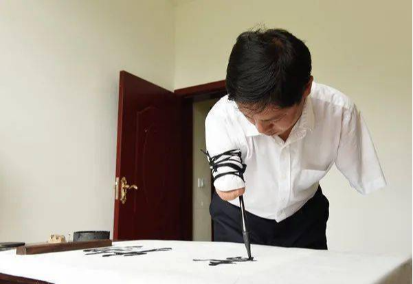 冬季写字时,他得将外套脱掉,露出仅剩10厘米的双臂残肢,每年冬天他的残肢都会生冻疮,奇痒难耐,只能在墙壁上搓搓,晚上回家再用热水烫烫,时间久了,皮肉破了、烂了,连吃饭用的工具都没法套上去,为了学生们,他坚持了下来。