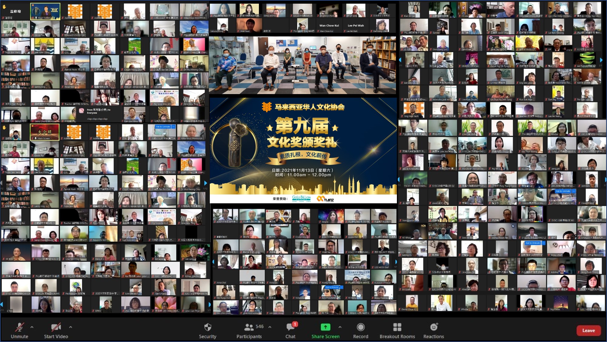 马来西亚华人文化协会今早11时通过Zoom举行第9届文协《文化奖》线上颁奖礼并出版纪念特刊,主题为“素质扎根,文化薪传”。