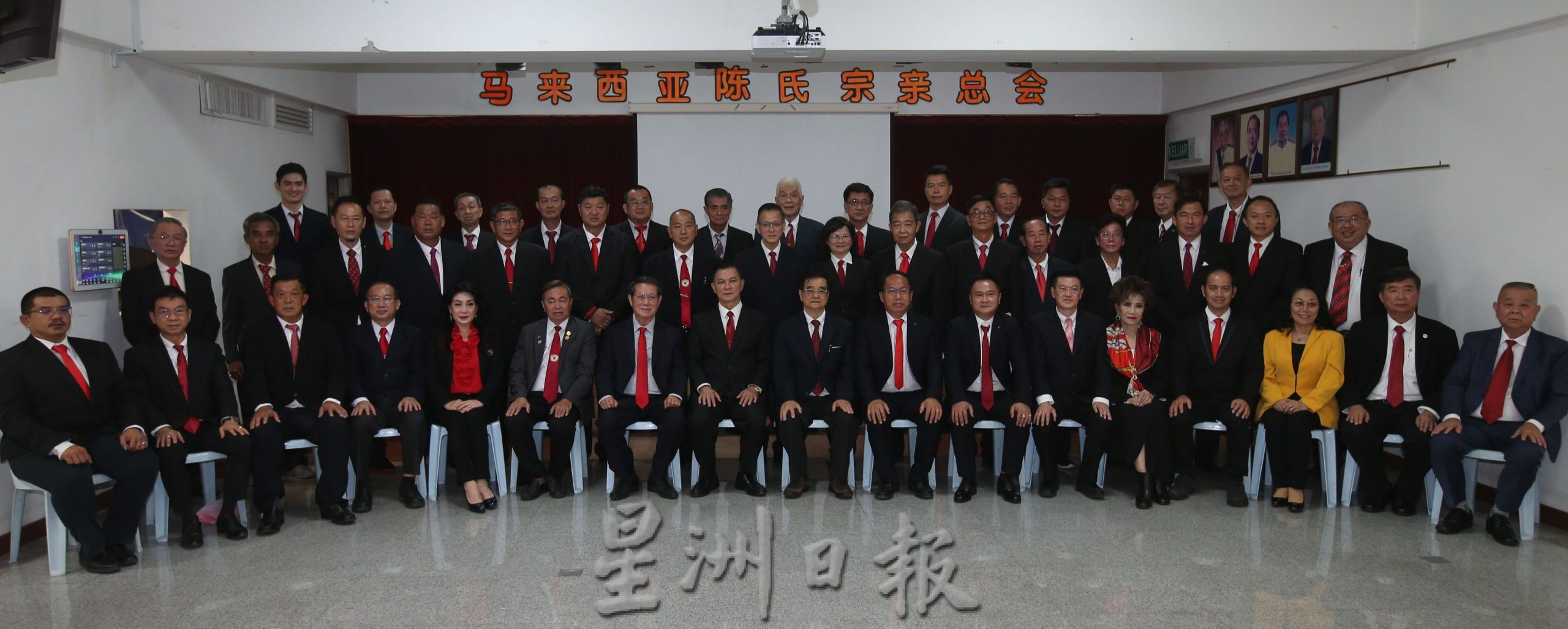 理事:拿督陈庆成 (雪兰莪福建永春岵山南陈家族会)、拿督陈良成 (大马槟州福建南安仑苍蔡西乡陈氏家族会)、拿督陈天场 (马六甲颍川堂陈氏宗祠)、陈来庭(槟城宗盟社陈氏宗祠)、陈延东(马六甲官山陈氏家族会)、陈斗川(隆雪海南颍川(陈)宗亲会)、陈联益(马来西亚永春东关伟公陈氏公会)、陈德发(麻坡潮州颍川公会)、陈安业(柔中保赤宫陈氏宗祠)、陈成木 (下霹雳陈氏宗亲会)、陈亚斯(彭亨陈氏联宗会)、陈再货 (太平北霹雳陈氏宗祠)、陈超胜 (雪兰莪瓜拉冷岳仁嘉隆陈氏公会)、陈兴旺 (曼绒陈氏宗亲会)、陈意明 (威省陈氏颍川堂)、陈剑华 (砂拉越古晋颍川陈氏公会)、陈冠瑆 (马拉端陈氏公会)、陈联褒 (砂拉越美里陈氏宗亲会)、陈行起 (槟城海南陈氏宗祠)、陈和庆(雪隆福建永春外碧陈氏家族会)、陈瑞清 (柔佛颖龙津陈氏家族会)、陈厚粱 (隆雪福建陈氏宗亲会)、陈金鸿(彭亨直凉举溪陈氏宗亲会)、陈锭源 (槟城陈氏宗义社)、陈芳保 (槟城陈氏潮堂社)、陈秋海 (马来西亚永春鸿榜陈氏公会)、陈业雄 (浮罗吉胆陈氏公会)、陈伟礼 (马六甲官山陈氏家族会)、陈国赐 (柔中保赤宫陈氏宗祠)、陈福源 (麻坡潮州颍川公会)、陈伟光(雪兰莪陈氏宗亲会)、陈英燕 (太平北霹雳陈氏宗祠)、陈祥斌(砂拉越民都鲁省颍川陈氏公会)、陈善朗(砂拉越诗巫颍川陈氏公会)、陈若香(柔佛颍川陈氏公会)、陈进春(大山脚陈氏颍川堂)、陈学祥(沙巴颍川堂陈氏宗亲会)