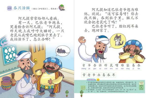 1. 一年级华文课本第137页,课文《吞只活猫》明明是新疆阿凡提的故事,却将出处误置为《伊索寓言》。
