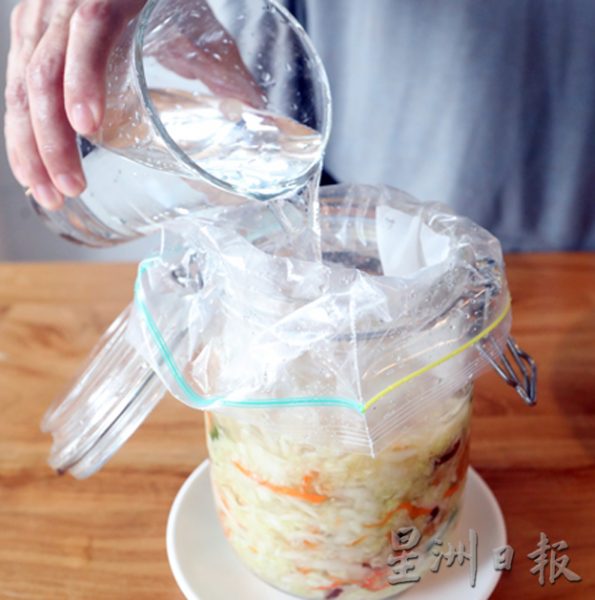 6.乳酸菌会消耗蔬菜里的糖分,以致酸碱值下降并氧化酵母,此时发酵菜即使置入冰箱后液体表面依然会长出薄薄的 “卡姆酵母”(Kahm yeast)薄膜,品尝起来会有酵母香气,但过多则有腐坏的气味。