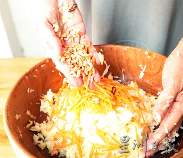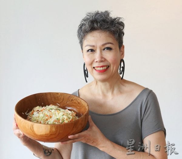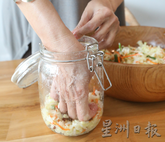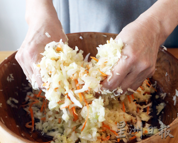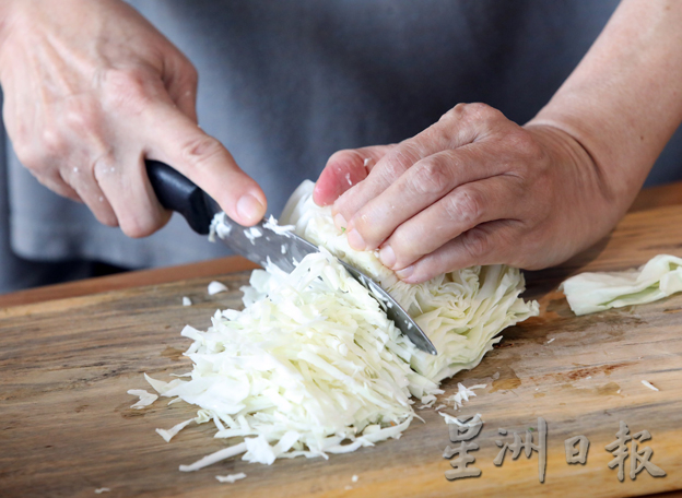 食物是有生命的,人们可以基于各国的饮食文化、气候和个人喜好变通。周心花以德国酸菜为制作基础,加入虾米、红萝卜丝和疯柑叶等食材做成马来西亚酸包菜,色泽与味道皆更诱人,是一道无需加热就可食用的开胃菜。