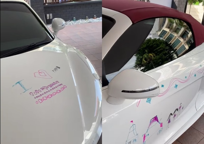 (新加坡16日讯)小孩子喜欢涂涂画画是很自然的事,不过,如果你心爱的白色跑车被孩子当成画板,你又会有什么反应?