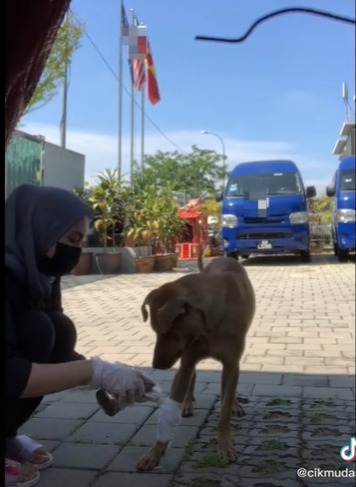 (沙亚南17日讯)见流浪狗前脚受伤,好心巫裔女子克服心理恐惧,细心地为毛孩包扎伤口,引起盛赞!