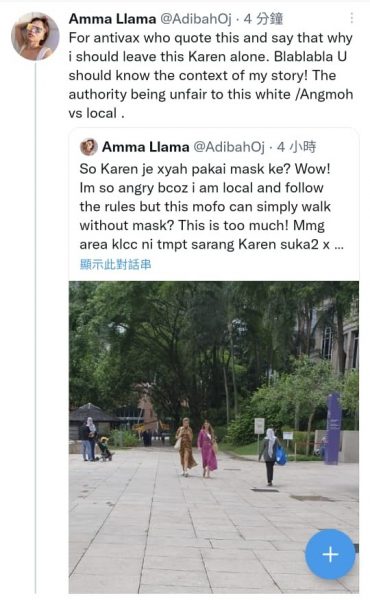 他说,根据推文,相关网民指其中一名洋妞为“Karen嫂”,并对Karen拒绝遵守防疫SOP及无视我国法律之举,表示愤怒。