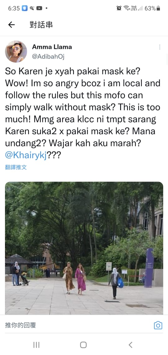 他说,根据推文,网民指其中一人为“Karen嫂”,并对Karen拒绝遵守防疫SOP及无视我国法律之举,表示愤怒。