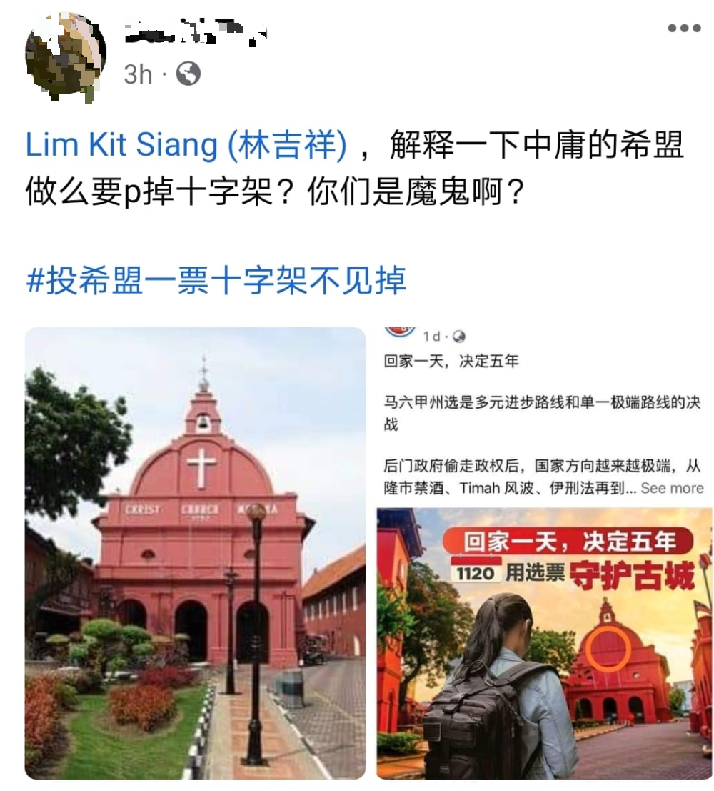 一个名为David Tan的脸书网民发表提问质问:“林吉祥,解释一下中庸的希盟为何要P掉十字架?你们是魔鬼啊?”