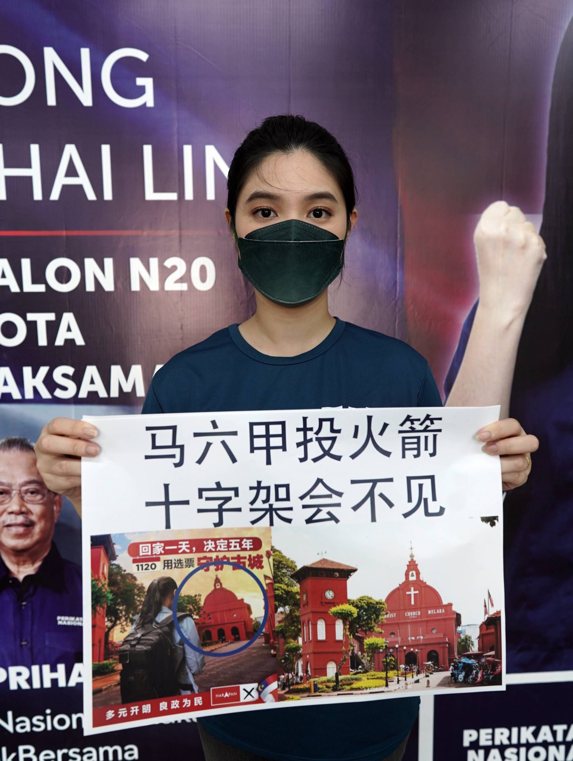 她今早召开新闻发布会时表示,她在昨晚收到上述宣传图,发现马六甲红屋教堂的十字架被抹掉,她不太能理解希盟行动党为何这样做。