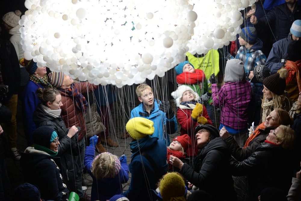 有时简单即是王道,“云”这个作品就因此成为了2015年最受喜爱的作品。6000个用过的灯泡构成了这朵巨型云;观众们还可以通过拉绳子与之互动,通过灯光的明暗展现下雨的效果。(取自brusselstimes网)