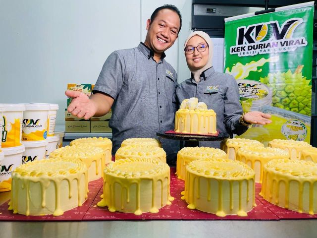 一对33岁夫妻莫哈末纳斯鲁丁和诺法兹丽雅,从2019年8月开始销售手作榴梿蛋糕,原本是随性地接订单,后来生意越来越好,甚至成立了一间公司,在实达阿南拥有自己的办公室。