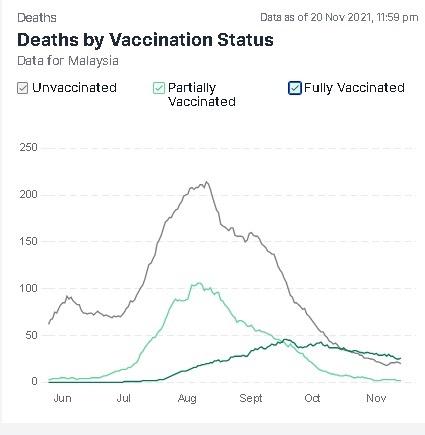 鉴于全国疫苗覆盖率增加,冠病死者自8月开始就呈下降趋势,而完成疫苗接种的死者人数,自10月20日开始已超越未接种人士。