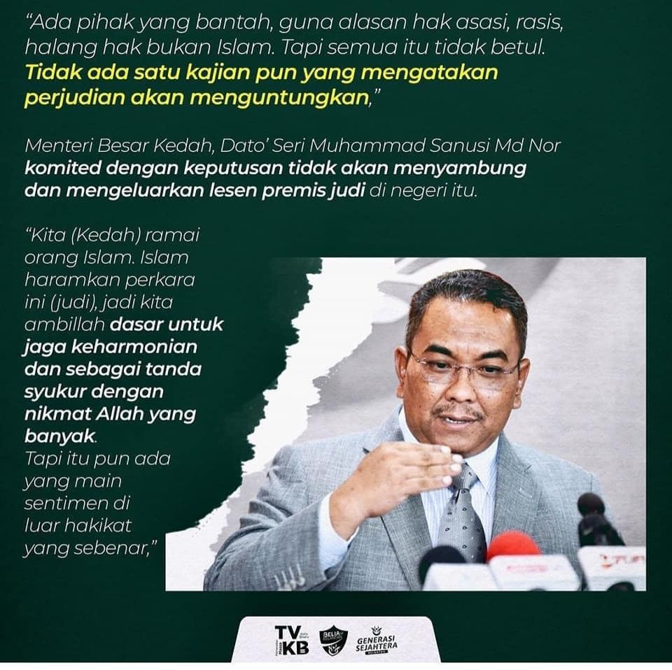 图表也指,吉打有很多穆斯林州民,而伊斯兰禁止赌博,州政府采取这政策,是为了顾及和谐,并作为感恩上苍恩赐的祝福,然而有人在真相之外挑拨情绪。