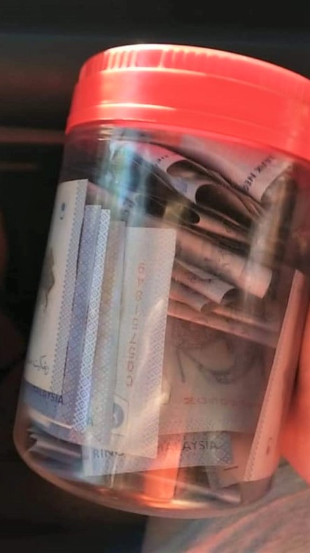 他接受《星洲日报》访问时表示,该塑料罐里的钱是零零散散的一令吉和数个硬币,看得出是妇女省吃俭用,一点一点存下来的,共有60多令吉。