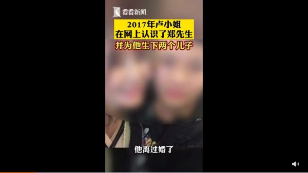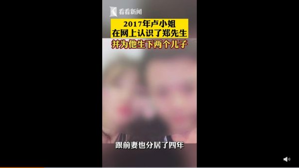 根据上海广播电视台旗下的看看新闻KNEWS报导,卢姓女子于2017年在网上结识郑姓男子,对方说他4年前离婚,育有一名儿子。