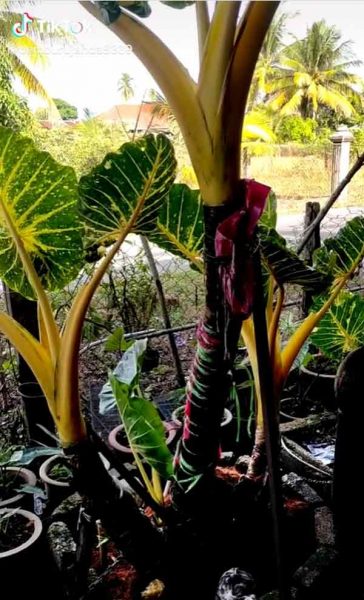 热爱种植的男子通过TikTok上传视频,分享他花了数年精心种植的新几内亚金斑观音莲(黄金海芋,Keladi Guine 916 Gold),为了防止被人偷走,他还出动铁链锁住树苗。