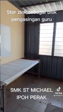 社交媒体昨日疯传这名来自怡保圣米高中学的老师哈菲控诉遭校方残忍对待的视频;他在视频中控诉,他因健康问题不能接种冠病疫苗,结果被校方安置在不合适的地方进行网课;该房间是运动用品的储藏室,里面没有插座,连一张椅子都没有,令他深感委屈与难过。