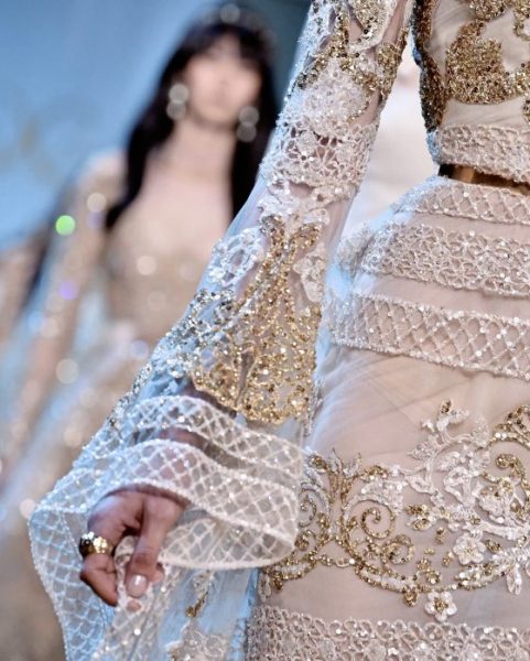 据悉,在18世纪晚期,葡萄牙人将源自印度的Aari刺绣技术传到了西方,与串珠刺绣结合,开始出现在高级定制时装店里。