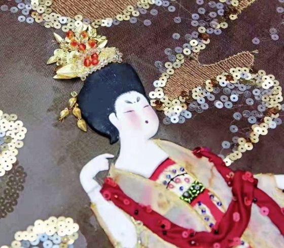 法式刺绣的材料极其丰富,例如珠子、亮片、贝壳、链子、缎带、羽毛、丝线等,由刺绣匠人凭借巧思融入和混搭不同的材料,绣出来的作品往往具有立体感和丰富的层次感,呈现缥缈、仙气、浪漫的效果。有者这般形容:如果说中式刺绣像画,那么法式刺绣就像雕塑,更加的立体。