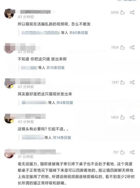 不过,剧组解释后依旧说服不了大众,更多爱猫人士表示单从咪咪从桌子跌下地面的样子“肯定服用药物”,不是认知中猫咪摔下“4脚能着地”的反应,而是4脚朝天,更有人直言“这镜头有必要吗? 引起不适”,再者如真被误会,何不放上咪咪现况让众人安心呢?