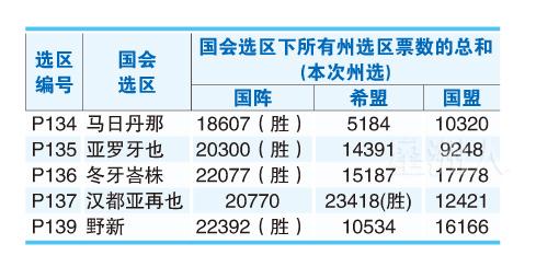 如果以州选票数总和计算,国阵可保住马日丹那和野新,还能重夺亚罗牙也和冬牙峇株。