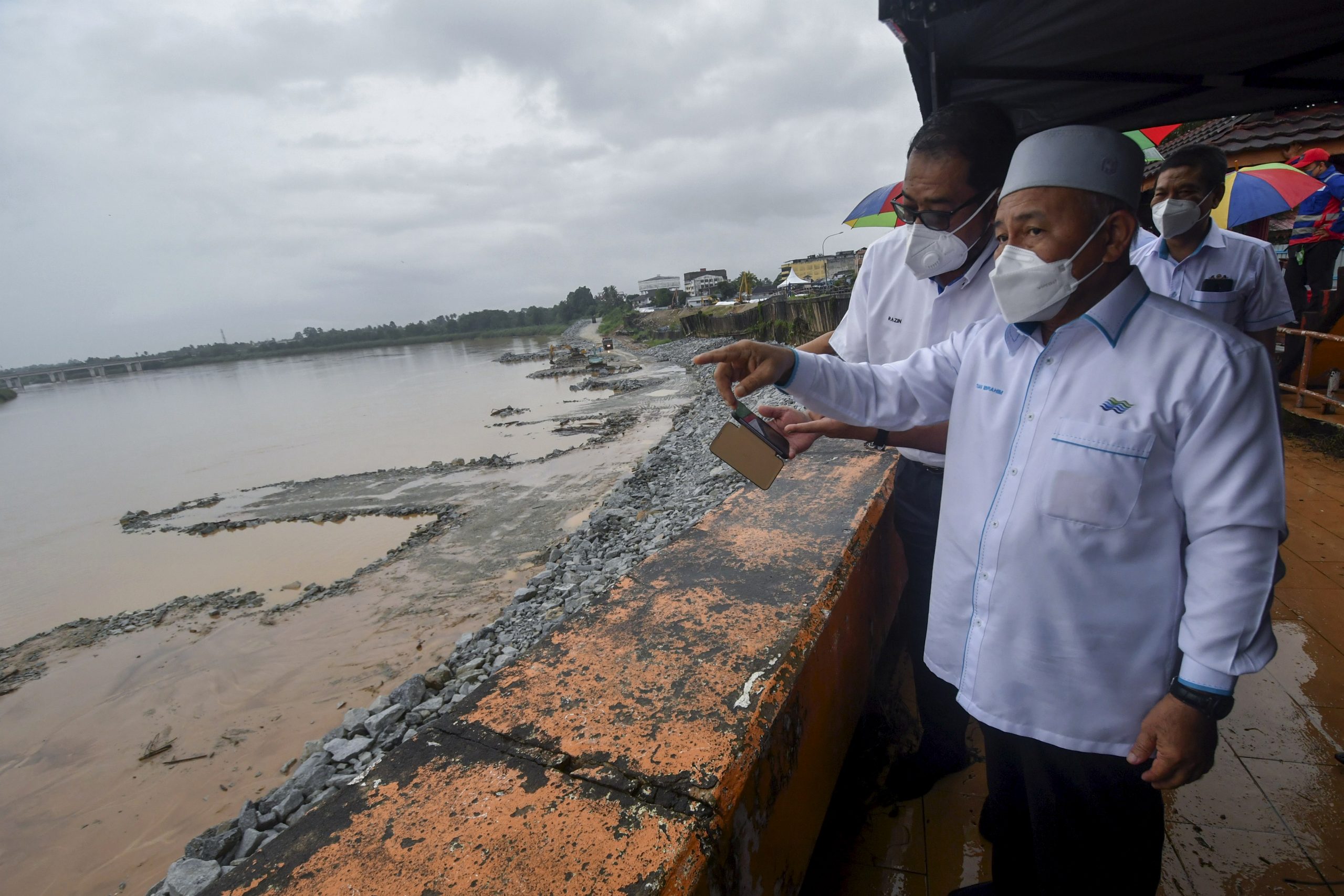 端依布拉欣也是环境及水务部长,他今日在丹州巡视巴西马县甘榜波亨遮拉奇河岸发生土崩后兴建河堤的抢救工程进度后,对记者发表谈话。