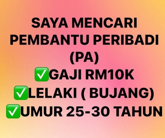 维达昨日在Instagram发贴招聘私人助理,她开出1万令吉的高薪工资,马上吸引许多网民极力争取。