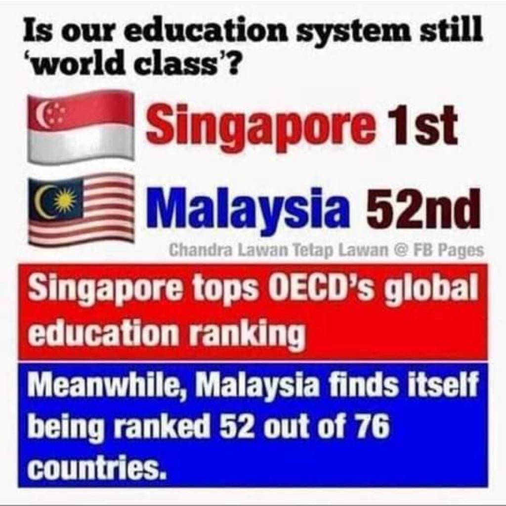 社交媒体所流传的资讯图指大马在经济合作发展组织(OECD)的全球教育排名排在第52名,新加坡则是第一;这实际上是该组织在2015年发布的数理成绩排名。