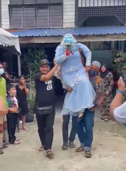 一对新人举行印尼班家(Banjar)文化婚礼,新郎与新娘必须由家中2名壮男各自抬在肩上相会,没想到视频上传社交媒体后,竟引来众多网民对新娘进行人身攻击。