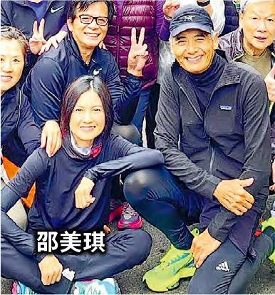 (香港6日讯) 周润发(发哥)热爱慢跑登山,不时相约圈中艺人组队一齐做运动。近日他们又再次相约一起跑山。吴岱融(鹫哥)在微博一连上传多张登山队日常,原来现年56岁的邵美琪也是其中一分子,素颜出镜的她状态大好,保养得宜,完全不输时下年轻女明星。
