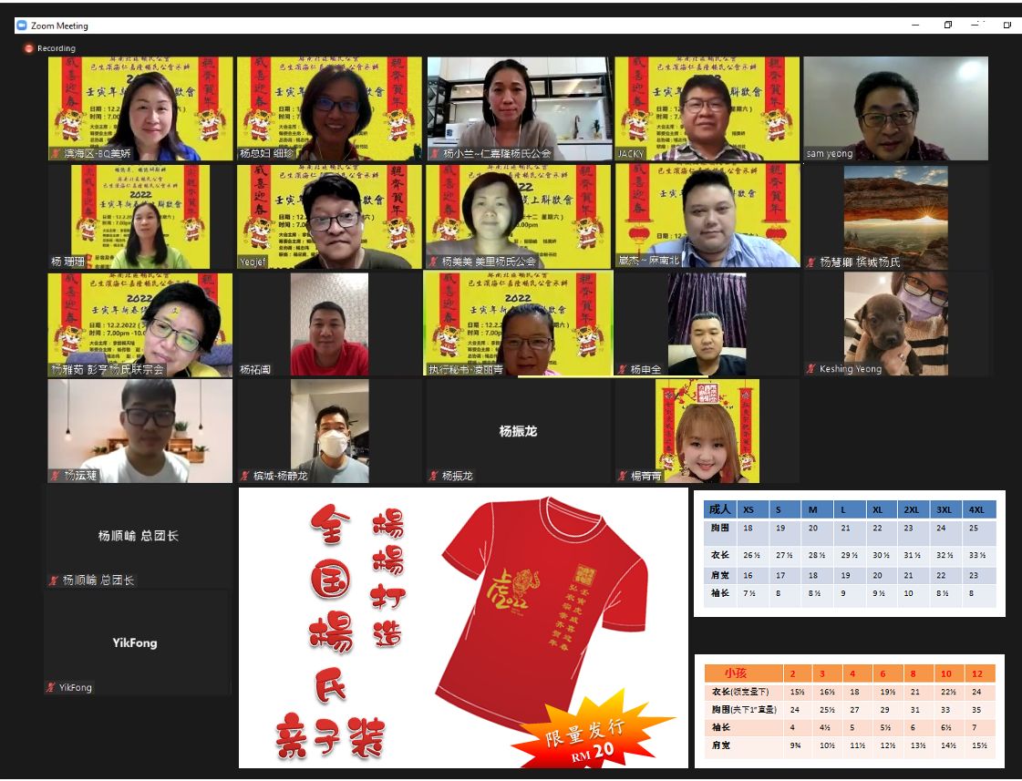 (吉隆坡7日讯)马来西亚杨氏联合总会将于2022年2月12日举行全国杨氏宗亲线上联欢晚会,为配合全马杨氏壬寅年新春活动,该会特别推出《杨杨亲子装》让所有线上线下及远在外地不能回乡团聚的家人能在同一时间穿上同一款衣服,在线上线下聚会。