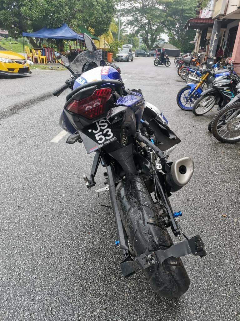 据了解,伤者在事发时骑着蓝色野马哈R25摩托车(车牌号码:JSC 537)朝往位于万挠的住家行驶,却在途经上述路段时发生车祸,之后被送往士拉央医院救治。
